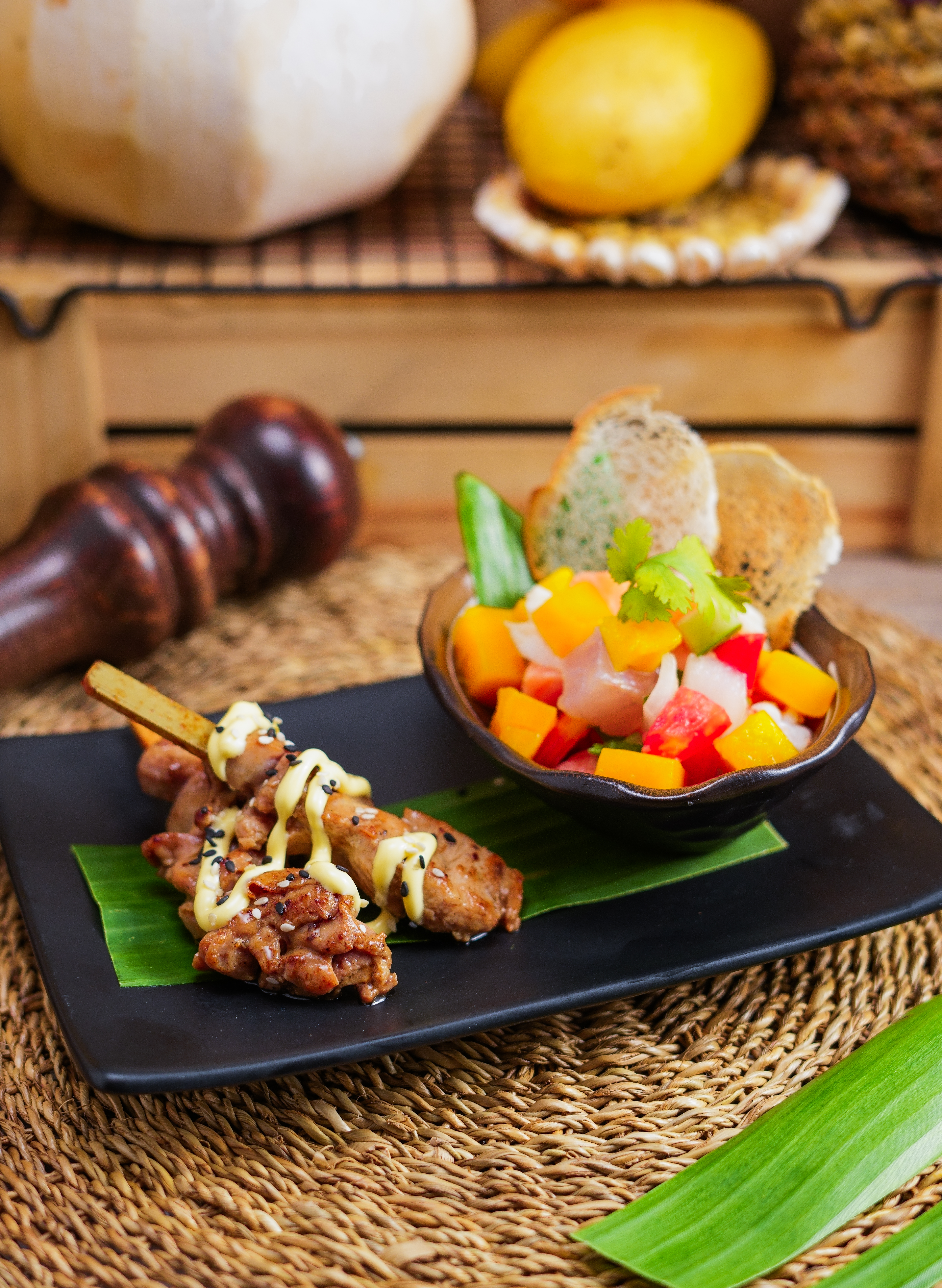 【メニュー例】 ※予告なく変更となる可能性がございます。 ・セビチェ(魚介類のマリネ) ミックスシーフード、レッドトマト、キュウリ、マンゴードレッシング ・グリルチキン(焼き鳥) 生姜に漬け込んだ鶏の串焼き、 にんにく、ココナッツクリーム、醤油でマリネし、ココナッツクリームで仕上げました。 ・タイ風ココナッツスープ エビとムール貝のココナッツスープ ・SURF & TURF(シーフード&ステーキ) 炙りサーモン、マンゴーサルサ、ココナッツライス添え ・ココナッツミルク入りビーフカレー ・デザート バナナ、マンゴー、ココナッツのハロハロ、ウベ(紫山芋)のアイスクリーム